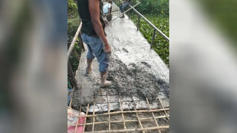 স্থানীয় বাসিন্দারা ঢালাইয়ের সময় অনিয়মের প্রতিবাদ করলে ঠিকাদার নামমাত্র পাঁচটি রড নিয়ে আসেন। একপর্যায়ে সিমেন্ট কম পড়লে স্থানীয়দের কাছ থেকেই ৫ ব্যাগ সিমেন্ট এনে ব্রিজের উত্তর পাড়ে বাঁশের কঞ্চি দিয়ে গত মঙ্গলবার ঢালাই সম্পন্ন করা হয়।