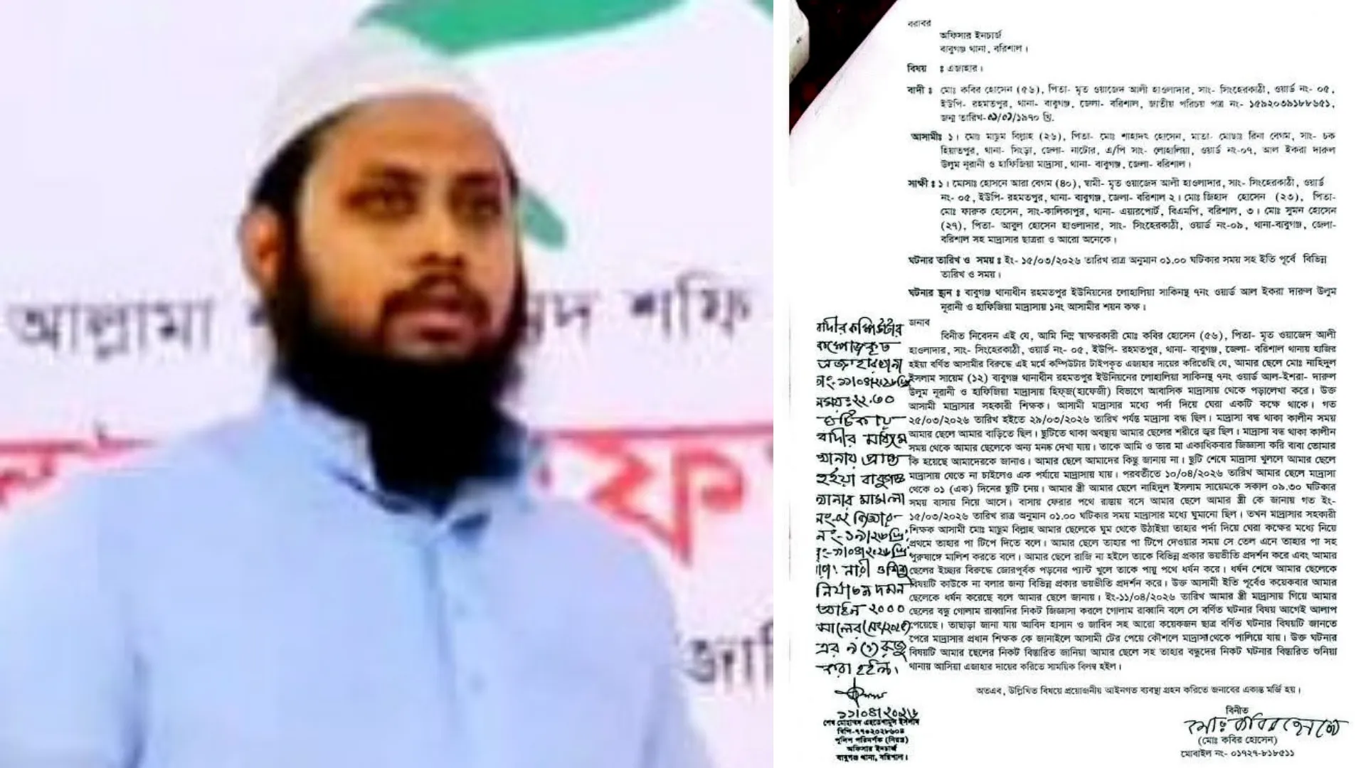 বরিশালের বাবুগঞ্জে ১২ বছর বয়সী এক মাদ্রাসা ছাত্রকে বলাৎকারের অভিযোগে মাদ্রাসার সহকারী শিক্ষকের বিরুদ্ধে মামলা দায়ের করা হয়েছে। এদিকে ঘটনার পর থেকেই পলাতক রয়েছেন অভিযুক্ত মাদ্রাসা শিক্ষক। বলাৎকারের দায়ে অভিযুক্ত ওই শিক্ষকের নাম মাসুম বিল্লাহ (২৬)। তিনি বাবুগঞ্জ থানার সামনে অবস্থিত আল ইকরা দারুল উলুম নূরানী ও হাফিজিয়া মাদ্রাসার সহকারী শিক্ষক এবং নাটোর জেলার সিংড়া উপজেলার চকহিয়াতপুর গ্রামের শাহাদাৎ হোসেনের ছেলে।