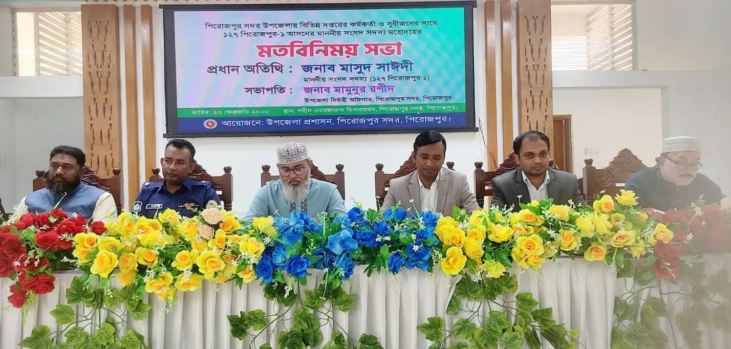 পিরোজপুর সদর উপজেলার বিভিন্ন দপ্তরের কর্মকর্তা ও সুধীজনের সাথে পিরোজপুর -০১ আসনের সংসদ সদস্য মাসুদ সাঈদীর সাথে মতবিনিময় সবা অনুষ্ঠিত হয়েছে।