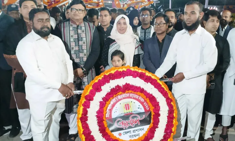 মহান শহীদ দিবস ও আন্তর্জাতিক মাতৃভাষা দিবস ২০২৬ যথাযোগ্য মর্যাদায় বরগুনা শহীদ মিনারে উদযাপন করা হয়েছে।দিবসটির প্রথম প্রহর রাত ১২টা ০১ মিনিটে বরগুনা জেলা প্রশাসক তাছলিমা আক্তার শহীদ মিনারে পুষ্পস্তবক অর্পণ করেন।