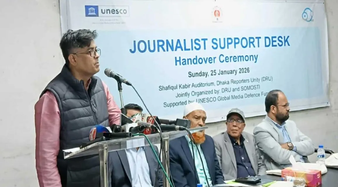 রোববার (২৫ জানুয়ারি) ইউনেস্কো গ্লোবাল মিডিয়া ডিফেন্স ফান্ডের সহায়তায় গণমাধ্যম ও যোগাযোগ উন্নয়ন সংগঠন সমষ্টির উদ্যোগে ঢাকা রিপোর্টার্স ইউনিটির কাছে সাংবাদিক সহায়তা ডেস্ক হস্তান্তর অনুষ্ঠানে তিনি এ কথা বলেন।