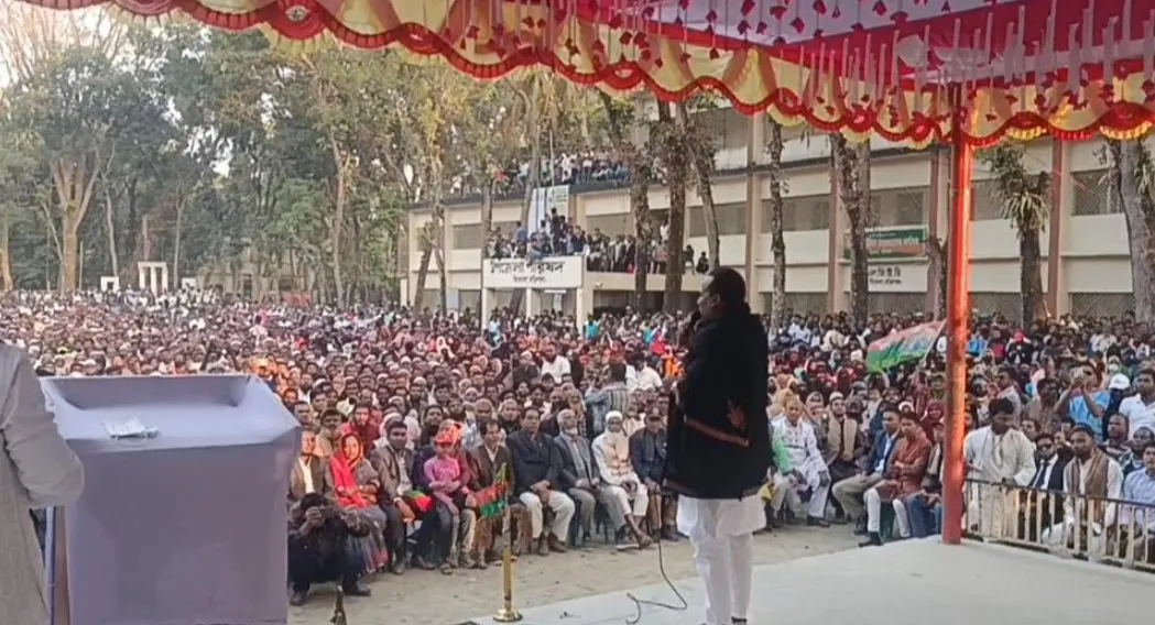 বরিশাল শহীদ মিনার প্রাঙ্গণে ৮ ফেব্রুয়ারি বিকেলে হাতপাখা প্রতীকের নির্বাচনী জনসভায় প্রধান অতিথির বক্তব্যে তিনি বলেন, বরিশাল আজ চাঁদাবাজদের কবলে জর্জরিত। সাধারণ মানুষ নিরাপত্তাহীন। এই অবস্থা থেকে মুক্তি পেতে হলে সৎ, ন্যায়ভিত্তিক ও আল্লাহভীরু নেতৃত্ব প্রতিষ্ঠা করতে হবে।